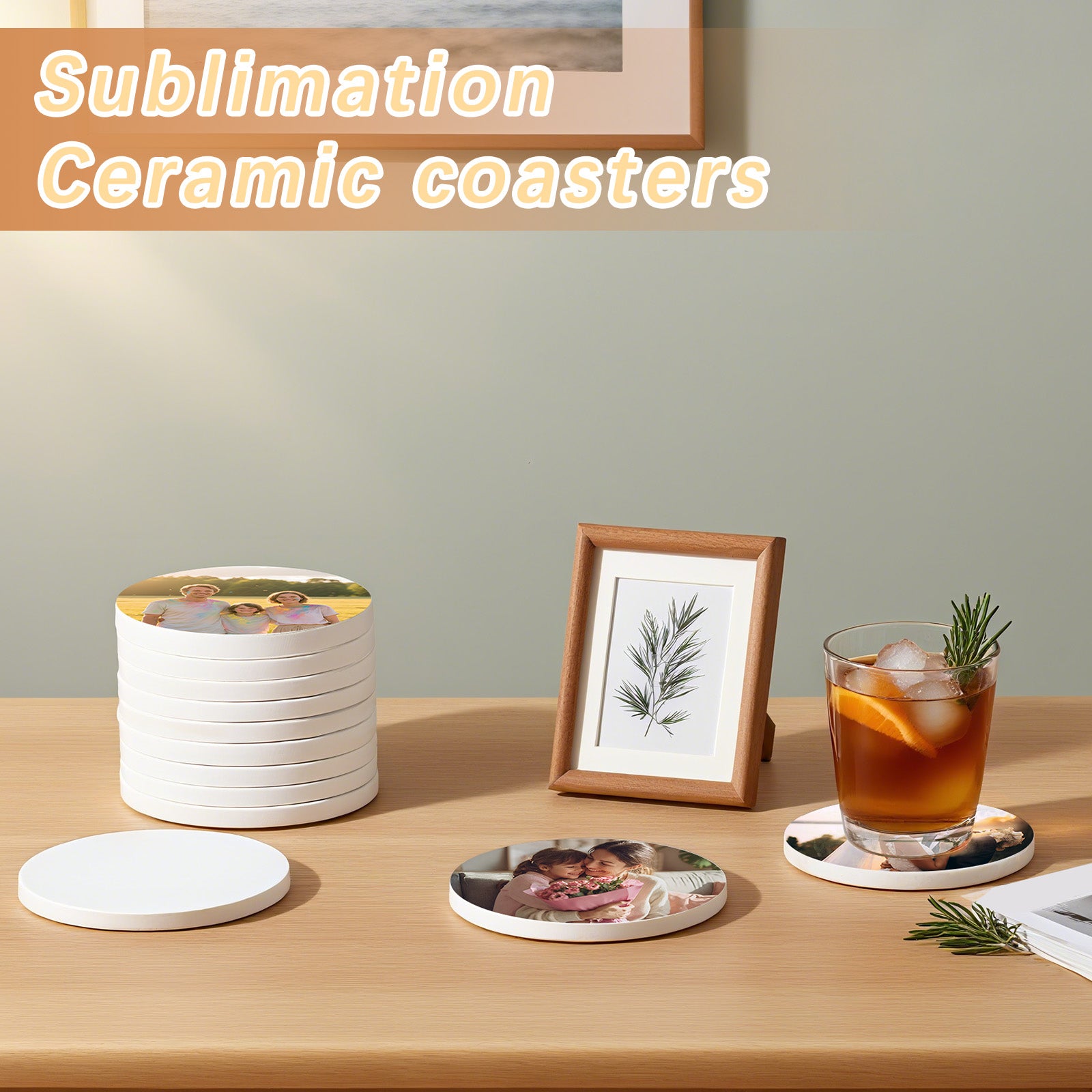 Comes with 100 ceramic coasters (size: 9.8 x 9.8 cm, thickness: 6mm). Perfect for DIY projects, craft classes, wedding favors, or small business use. -