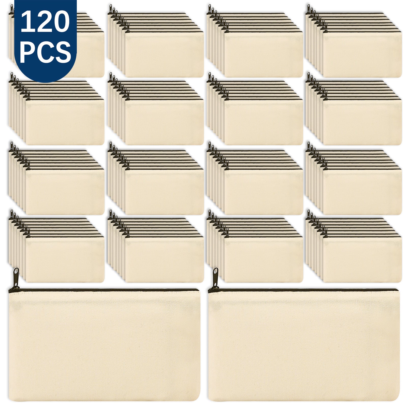 Elevate your DIY projects with this 120-pack of beige sublimation cosmetic bags. Sized at 7.28 × 4.72 inches (18.5 × 12cm), each bag is made from high-quality polyester canvas and features a durable black zipper. Perfect for makeup storage, pencil cases, and personalized gifts.