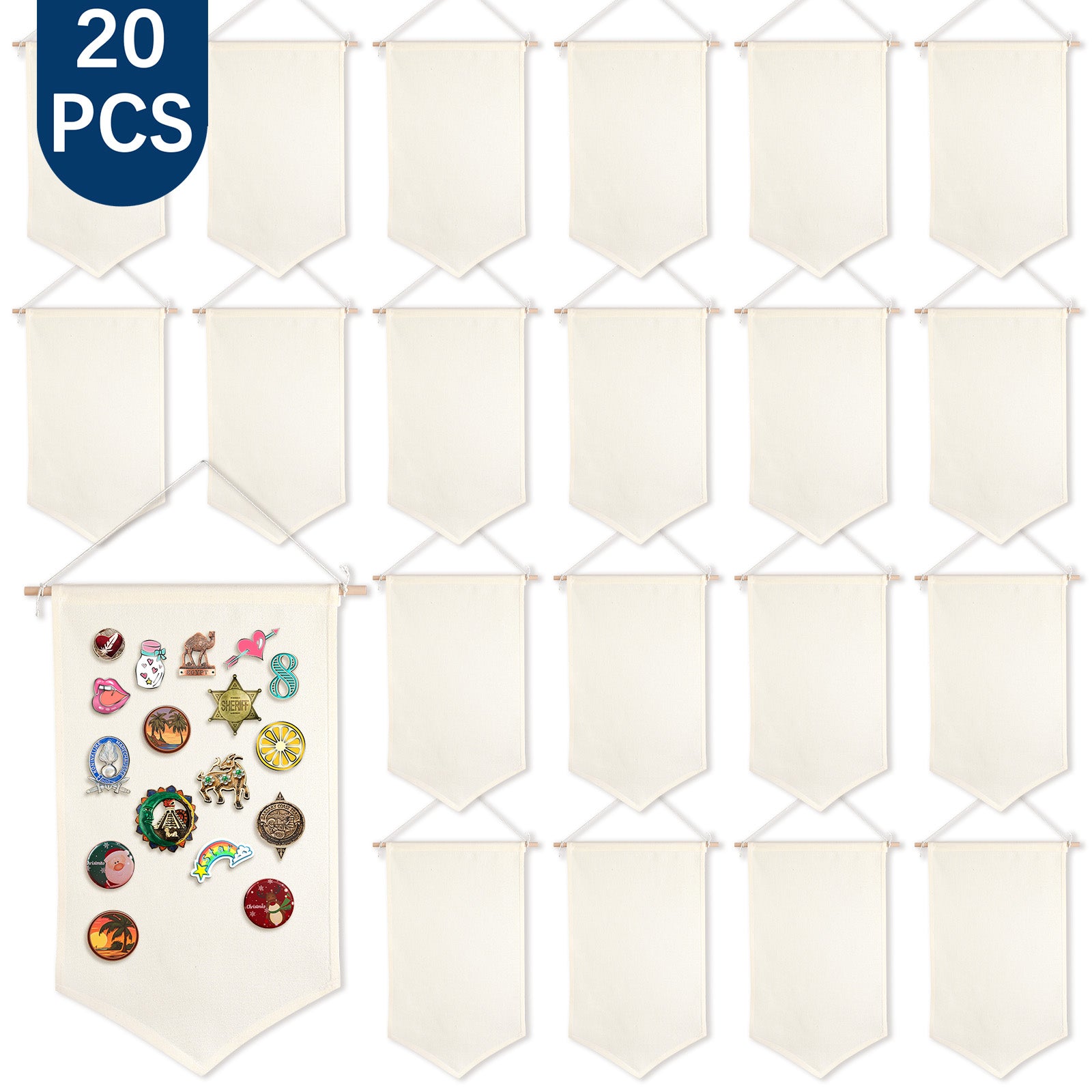 Upgrade your craft or retail displays with our bulk beige canvas banners, perfect for sublimation printing and organizing small accessories. Each banner measures 11.8 × 20.8 inches (30 × 53 cm) and comes with a sturdy hanging rope for easy installation.
