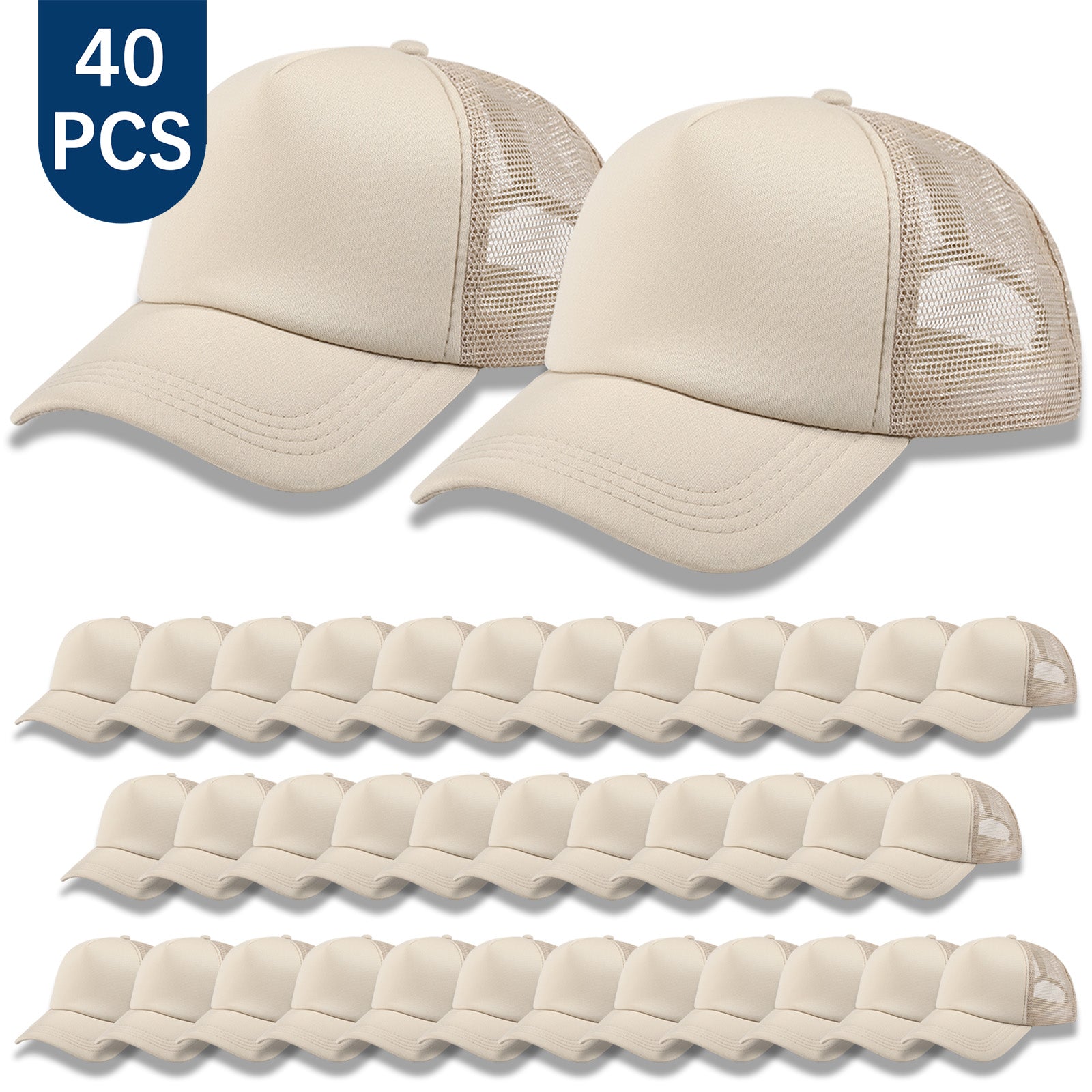 Our 40 PCS Khaki Trucker Hats are available in large quantities with fast delivery and great prices. We offer no minimum order, and we can help you customize the hats with your design.