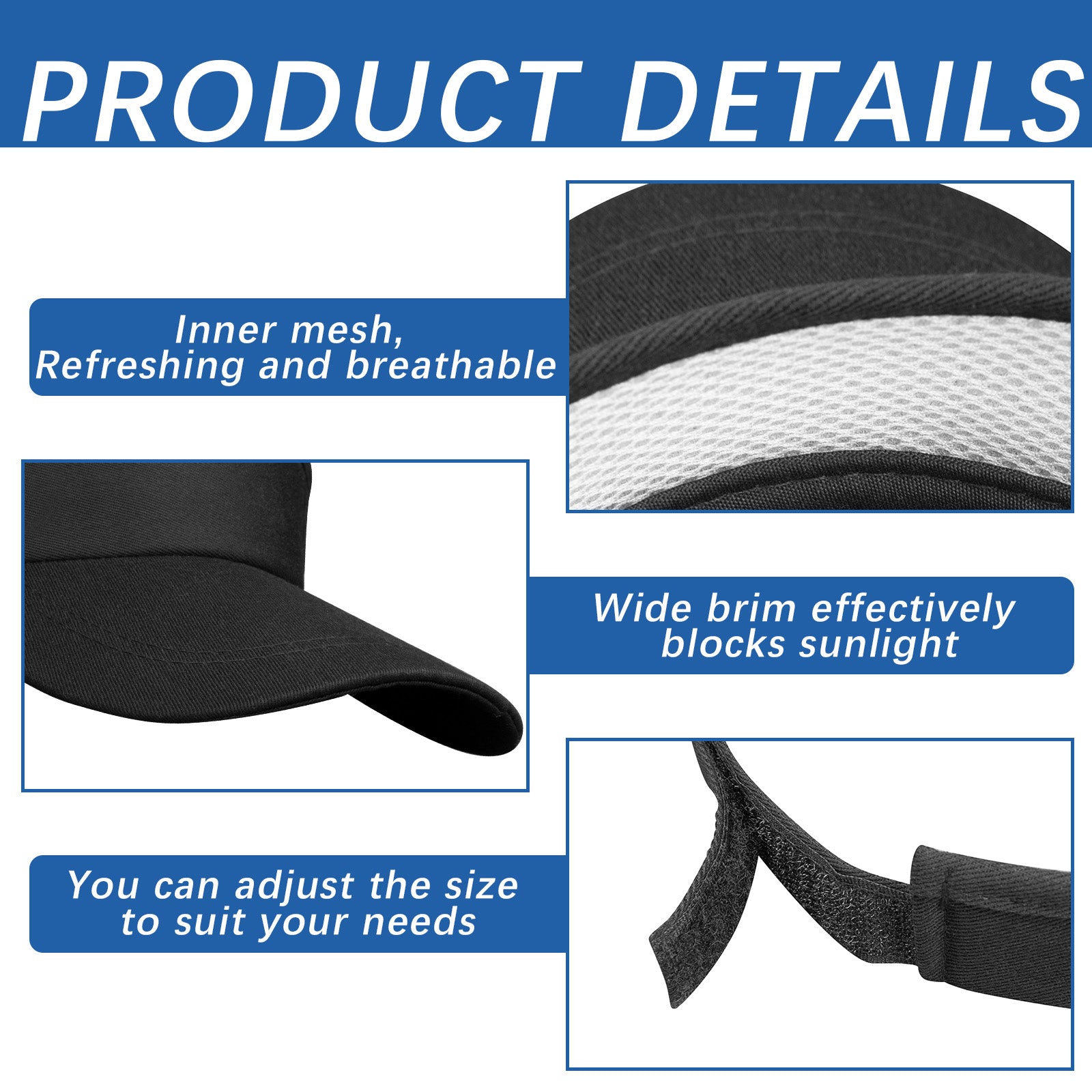 These black sun visor blanks are designed for customization using DTF transfer, sublimation-style printing on suitable surfaces, or other DIY projects. Lightweight and breathable, they are practical for sports, outdoor events, and promotional purposes.